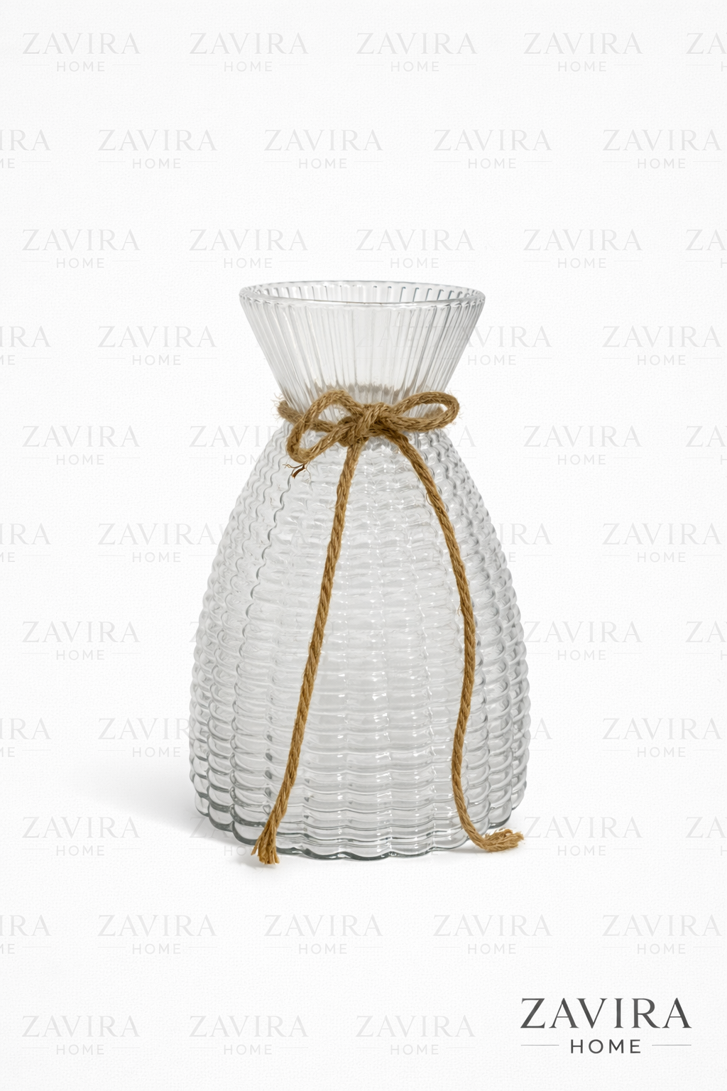 20 cm Dokulu Cam Vazo (Rustik İp Detaylı)