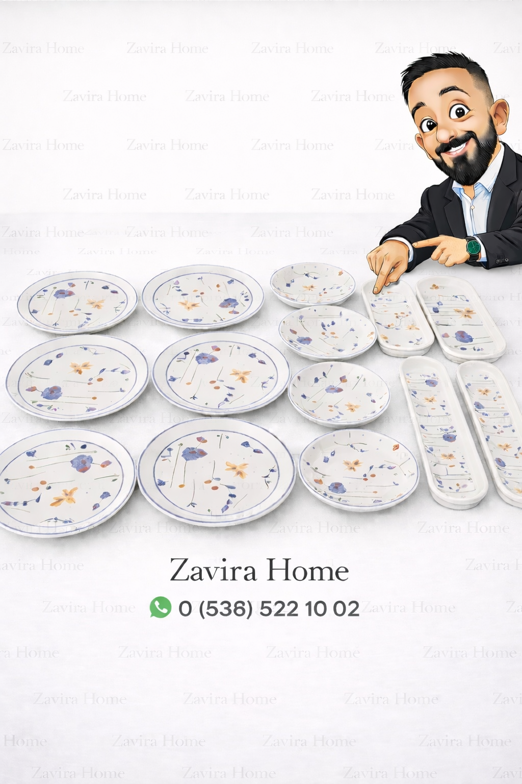 🌸 Çiçek Desenli 14 Parça Kahvaltı ve Sunum Seti