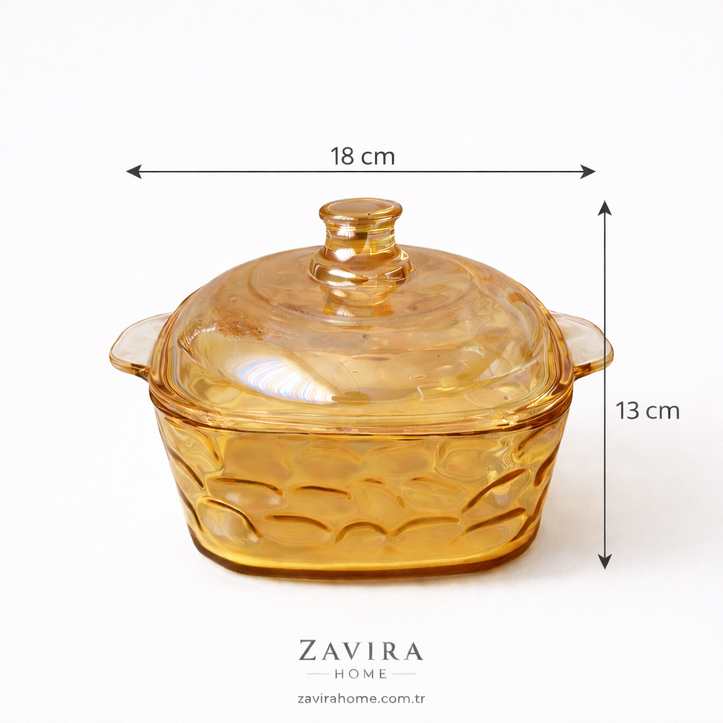 Şık amber cam tasarımıyla sofralarınıza zarafet katan kapaklı cam sunumluk, çok amaçlı kullanım imkanı sunar.